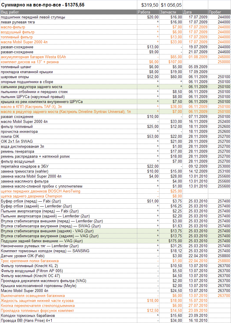 дада, сорри... сдержу своё обещание... выкладываю "смету" на все "вливания" в свой Гольф...