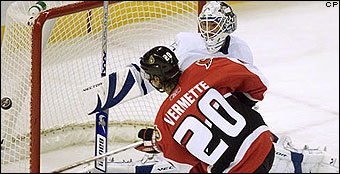 В нынешнем межсезонье Пэт Куинн предстал уже не экономным администратором, а человеком, не жалеющим миллионов для укрепления своей команды. На рынке свободных агентов этим летом он сразу приобрел двух дорогостоящих нападающих – ветеранов Шейна Корсона и Гэри Робертса. Трехлетний контракт с Корсоном и Робертсом обошелся клубу в 15 миллионов долларов. А что же известно об этих игроках? Шейн, находясь в составе "Монреаля", больше лечился, чем играл, а Гэри из-за хронической травмы шеи уже как-то даже объявлял о завершении хоккейной карьеры. Самое интересное, что "Торонто" проявляет интерес и к приобретению серьезно травмированного Эрика Линдроса, годовая зарплата которого – почти 9 миллионов. Создается впечатление, что боссы «Кленовых Листьев» намерены создать в грядущем сезоне дорогостоящий командный госпиталь.