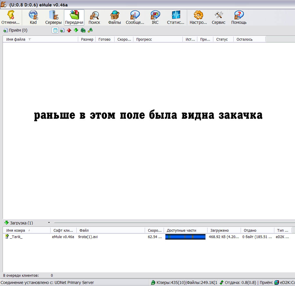 Забавно. И все же я хочу увидеть пару скринов.Markus сказав(ла):видно что качает по сообщениям осла типа "Файл загружен" поле закачки - это раздел "передачи"