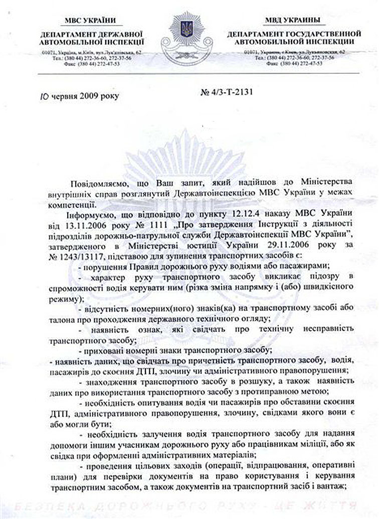 Приказ МВД №111 зарегистрирован в Министерстве юстиции Украины 26 червня 2009 р. за N 576/16592.