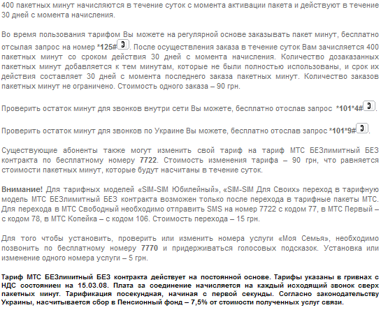 Тариф Супер МТС діє до 31.01.2009