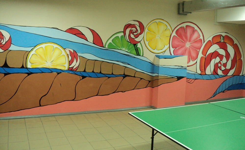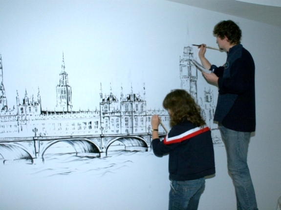 Выездная бригада художников выполняет такие услуги,как:роспись стен в интерьере и