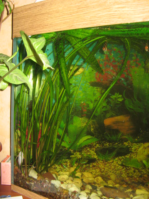 шо знач мучать?! они маленькие, им и там хорошо, и вообще у меня уже было два больших аквариума, захотелось маленький и круглый, а я себе еще в комнату хочу одну золотую рыбку в кругленький сосудик, блин я наверно изверг :x