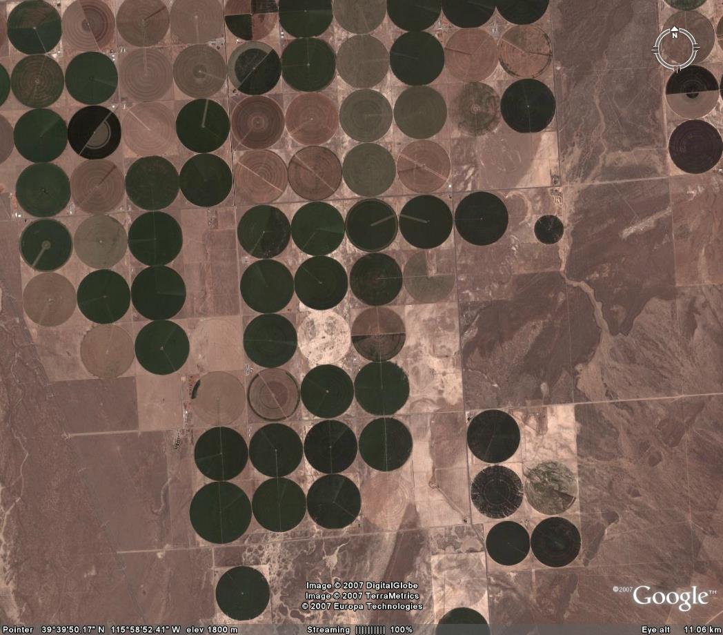 Возможно это орошаемые поля в какой нибудь пустыне.А как вам "пластинки" по всей америке? Диаметр пластинки - около 800м.