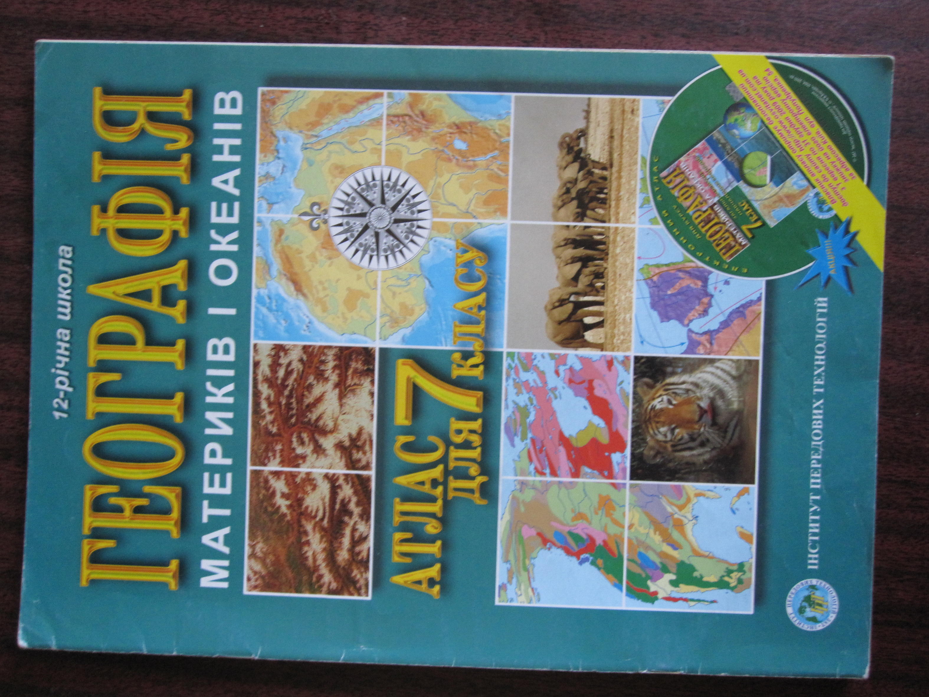 Атлас по географии для 7 класса -5 грн новый редко пользовался