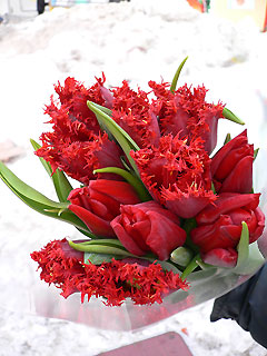 Тюльпан красный - верь мне, объяснение в любви.