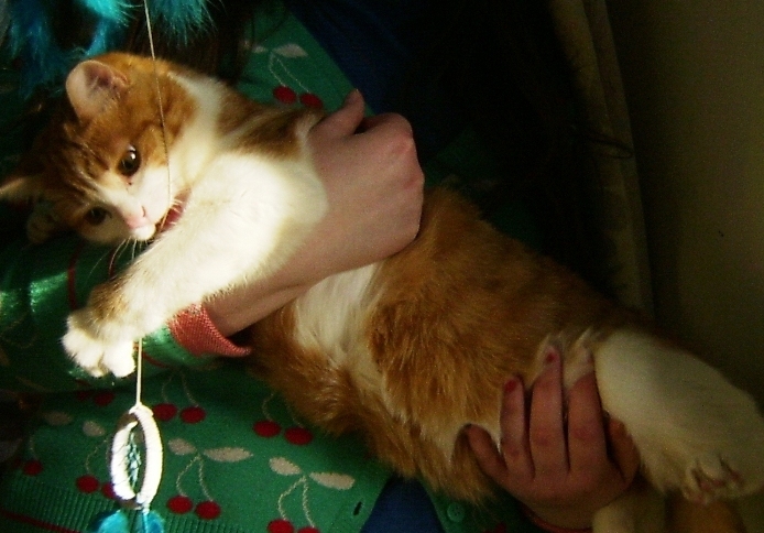 Кошка, рыжая с белым ( рыжий очень насыщенный, на спине маленькая косая белая полосочка,большие круглые глаза) возраст-год и 2 месяца, уже заметно беременная, потерялась в районе Кирова.( если поточнее, то в районе Вечного огня)
