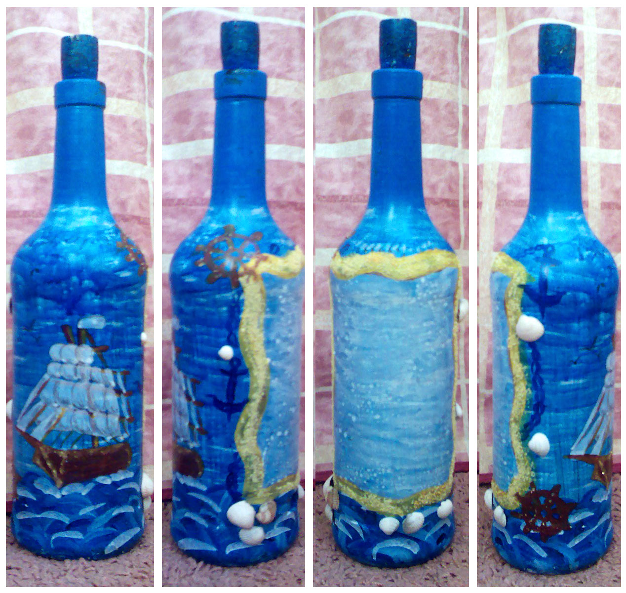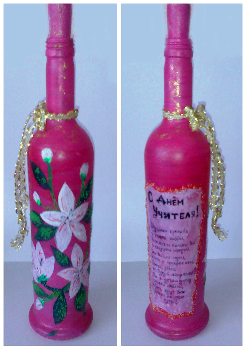 Более 3-х лет нашла себя в таком интересном занятии как художественная роспись бутылок. Затем пригляделись тарелки. А не так давно начала дополнять работы техникой декупажа.