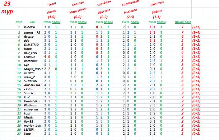 Таблица после 23 тура. You must be registered for see images Кто найдет ошибки или неточности, пишем в теме Жалобы или мне в лс... Исправим Огромная благодарность выражается Masiky за помощь в составлении таблицы!!!