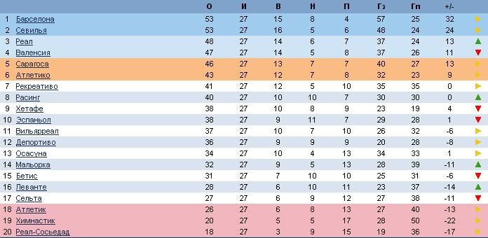 Re: Відповідь: СПОРТПРОГНОЗ чемпионат Испании Результаты: Валенсия - Расинг 0-2 Рекреативо - Барселона 0-4 Мальорка - Бетис 2-0 Сарагоса - Атлетико 1-0 Депортиво - Хетафе 1-0