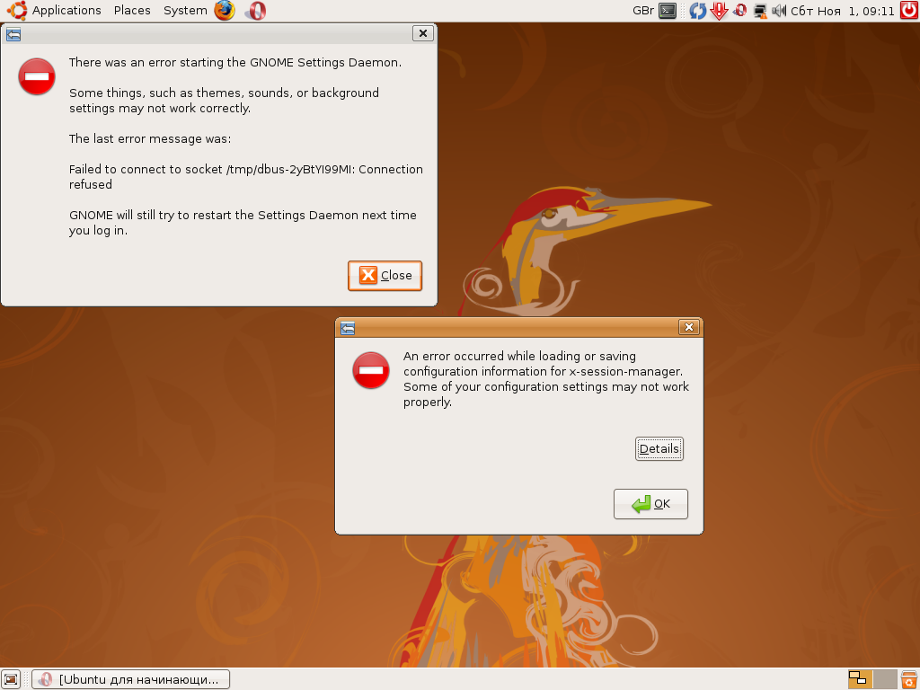 for information. (Details - 1: Failed to get connection to session: Failed to connect to socket /tmp/dbus-0dkAOsOCrt: Connection refused)