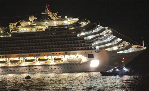 Итальянец с 4,2 тысячами народу напоролся на мель у берега. Это всё же лучше, чем врезаться в айсберг, понимаешь. Некоторые граждане стали прыгать за борт. Зачем???