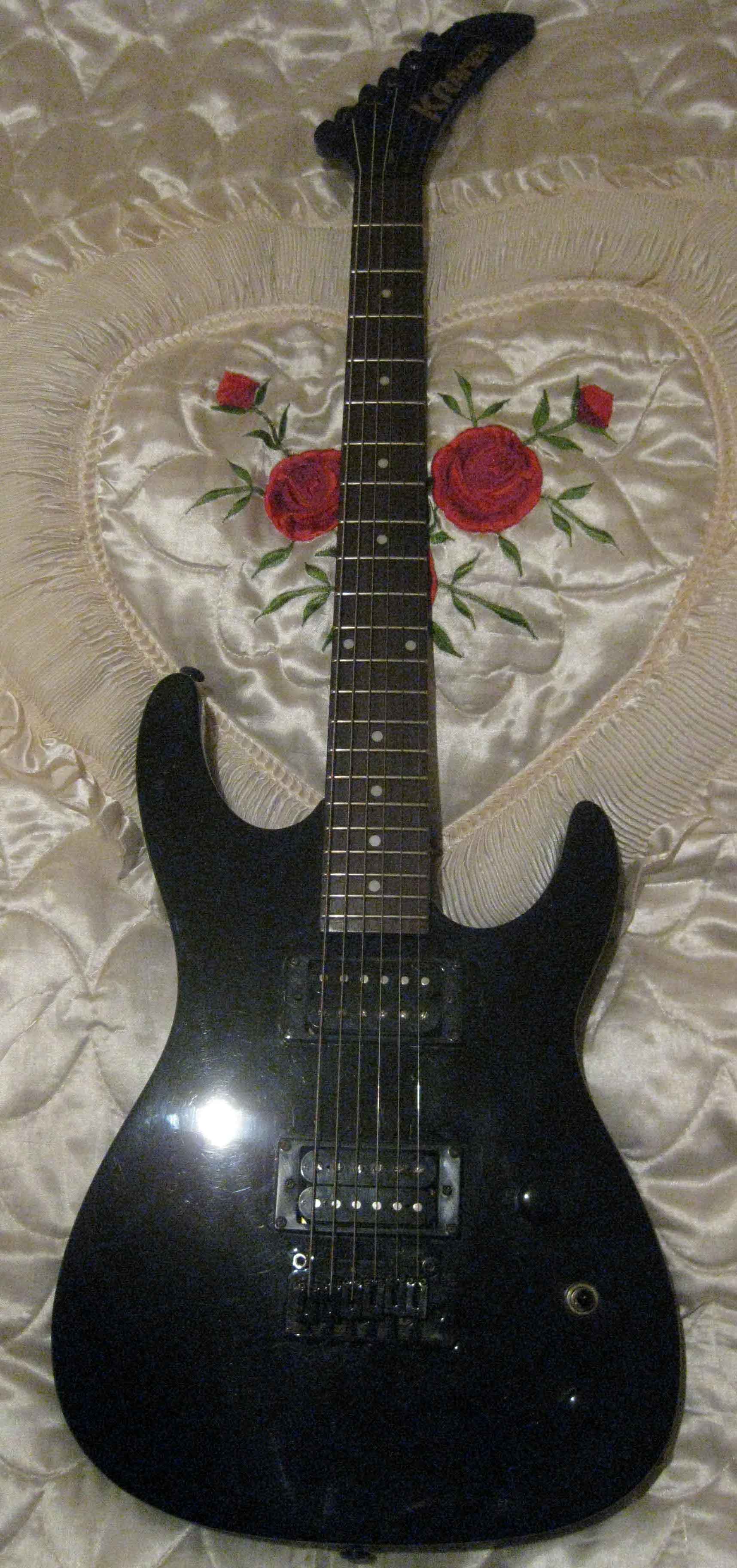Дэка - ольха, нато. Двуболтовое тремоло (заблокировано деревянным бруском, можно разблокировать, все детали от тремоло-системы отдам в комплекте). Два хамбакера Kramer K-Force. Регуляторы: 1 громкость, 1 тон, 3-х позиционный переключатель.