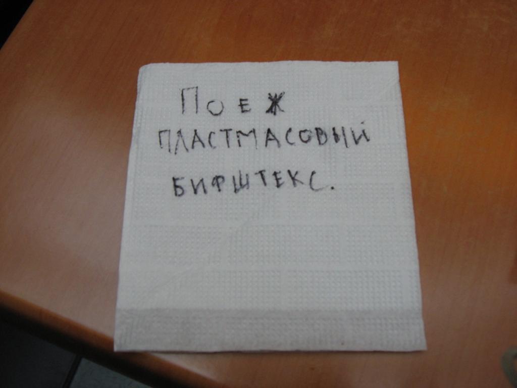 Ответ: Специально не придумаешь! Нашли салфетку в салфетнице. Андер:razz: З.Ы.Офигела, когда увидела фотку You must be registered for see links Угадайте-ка, что это за девушка в белой маечке на заднем плане?:bounce: