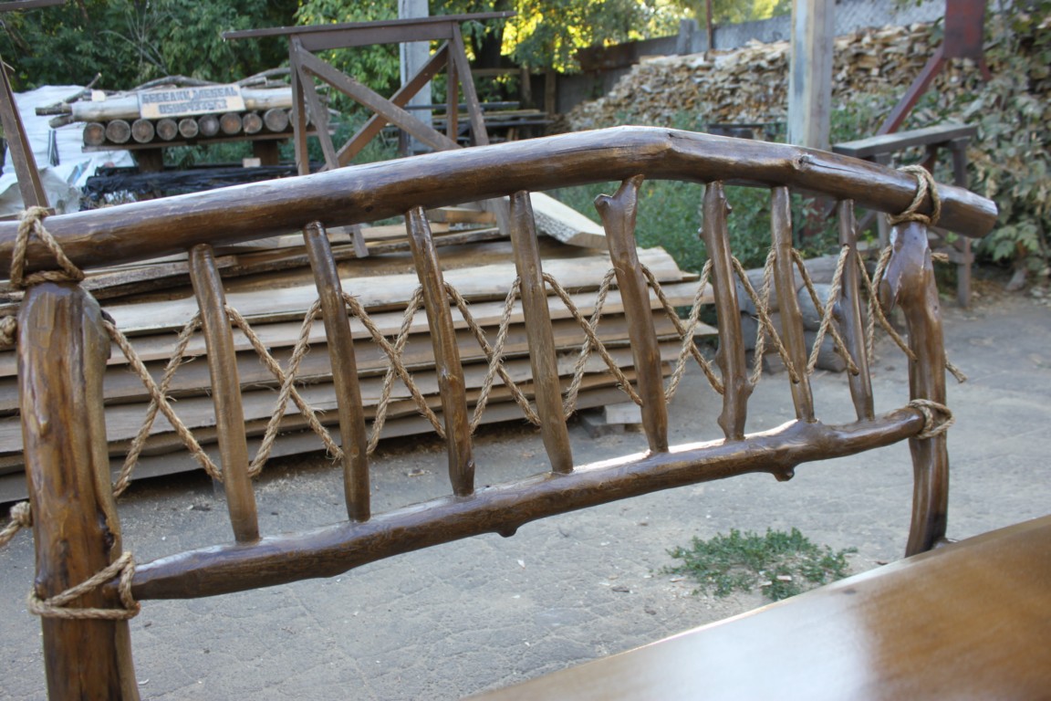 Изготовление и продажа мебели из натурального дерева для кафе, баров, ресторанов, бань, саун, объектов досуга, садовая с применением в изготовлении веток, коряг, каната.