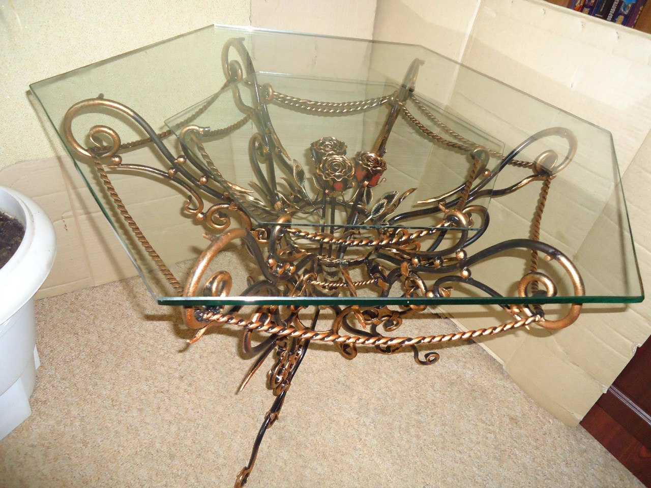 Столик 6-ти гранный с двойным стеклом, высота 65см, диаметр 90 см.