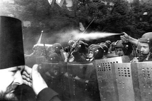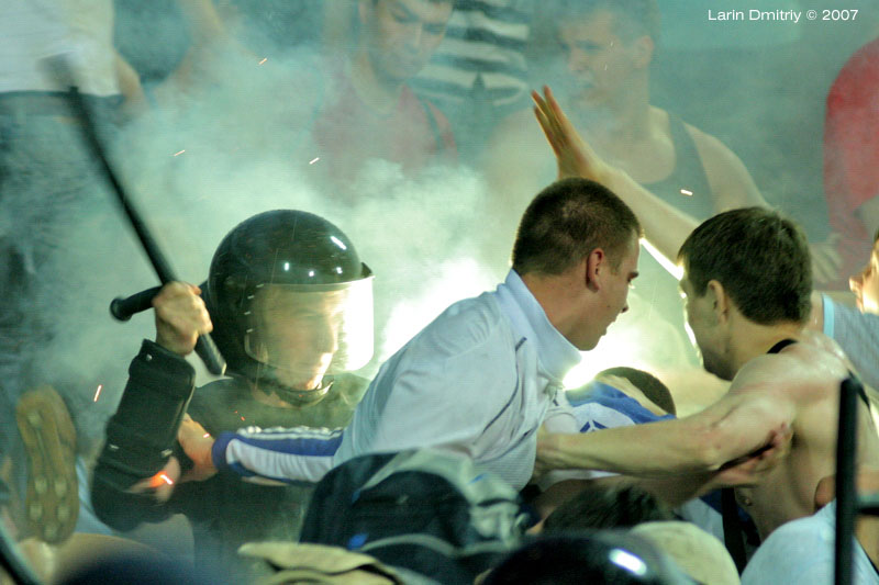 Кст, помниться видел в газете фото когда 3 ментов ( по другому назвать не могу, хотя .... @$#&) избивали седовласого длиноусого деда. Может у кого есть этот снимок.