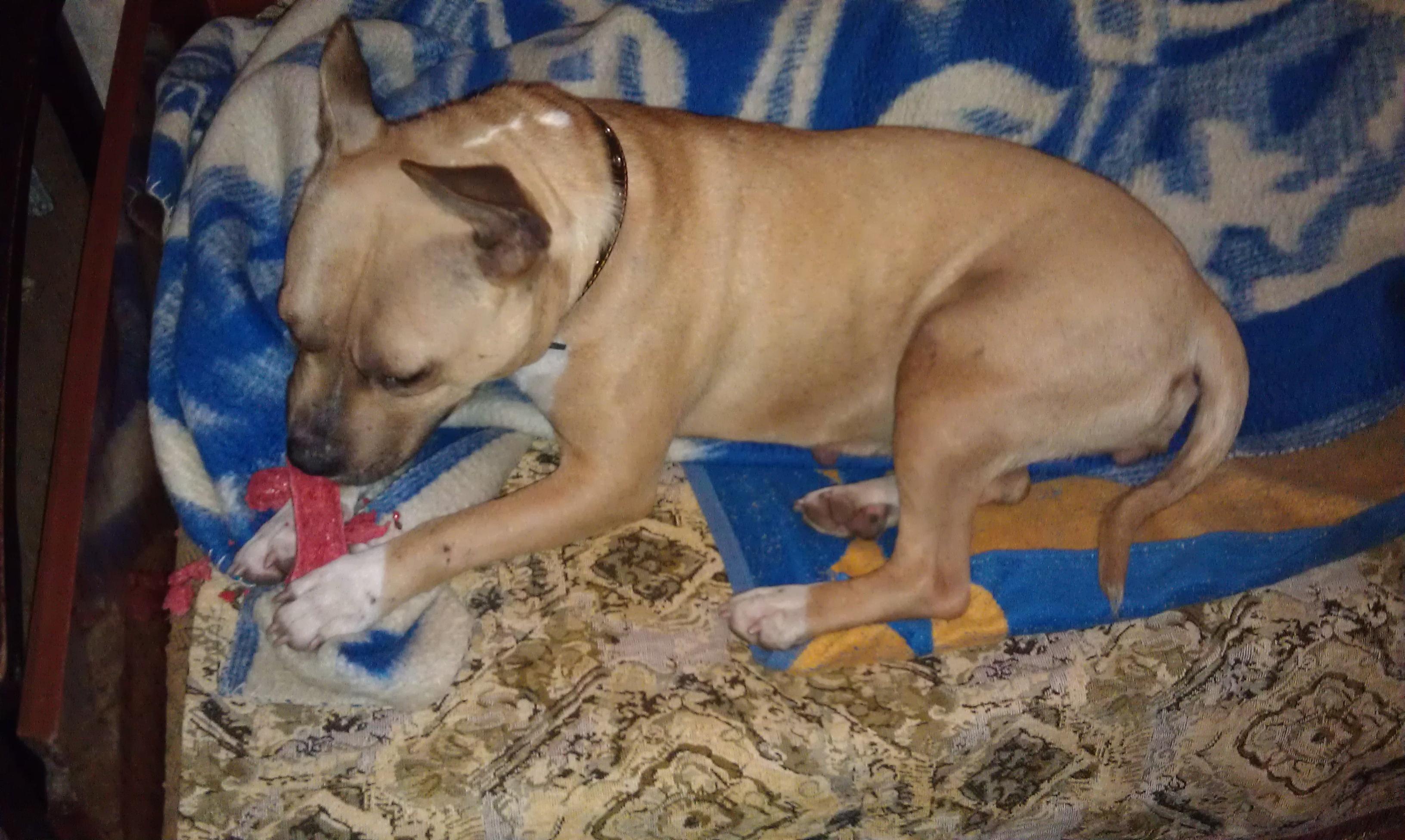03.12.2012 в районе городского ЗАГС найдена собака - самочка бойцовской породы (не то пит-буль, не то стафф). Собака явно домашняя - ручная, очень ласковая. Ищем реальных хозяев. Если собака не нужна, с удовольствием оставим себе, просим сообщить хотя бы имя. Контактный телефон 095-652-21-55, Вера Владимировна.