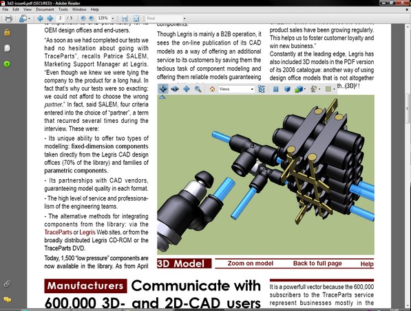 Вышел в свет один из первых журналов по CAD, который использует технологии 3D отображения обьектов прямо внутри документа PDF. Создан при помощи Acrobat 3D французами. Для просмотра необходима одна из последних версий Acrobat Reader`a.