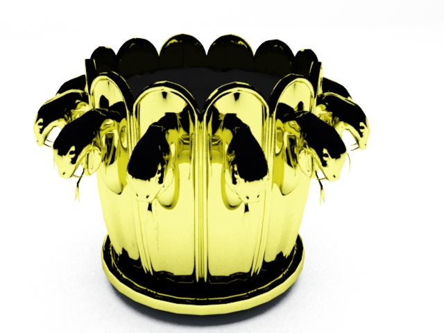 Сделай студийный рендер, либо кинь ХДР-ку. Ато из-за черноты не видно ни зги.Бредовый цветочный горшок, экспериметировал с V-Ray...