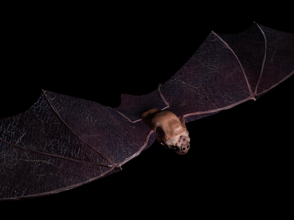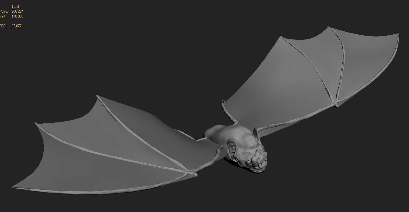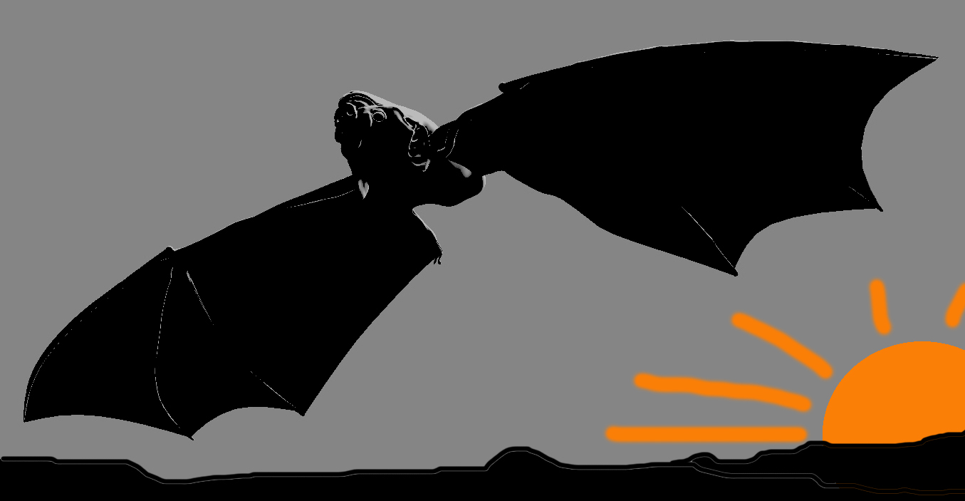 Лично мое мнение: поскольку этот зверёк в полёте, то нужно сделать его вид снизу, вроде как случайный зритель увидел его пролетающим над головой. ну а поскольку зверьки ведут ночной образ жизни, то думаю, что на фоне заката с таким освещением, при котором не достаточно темно, но достаточно светло, что бы его рассмотреть.Вот то что уже есть, буду рад выслушать предложения...