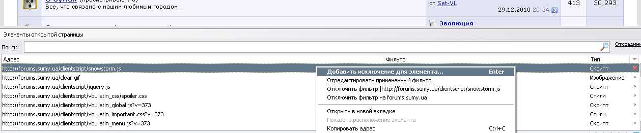 окей, я выключу... я знаю как и где, а как быть с рядовыми юзерами?.. пусть мучаются?... :shock:ИМХО запретить в браузере выполнение snowstorm.js с помощью плагина FireFox ADBlock для forums.sumy.ua