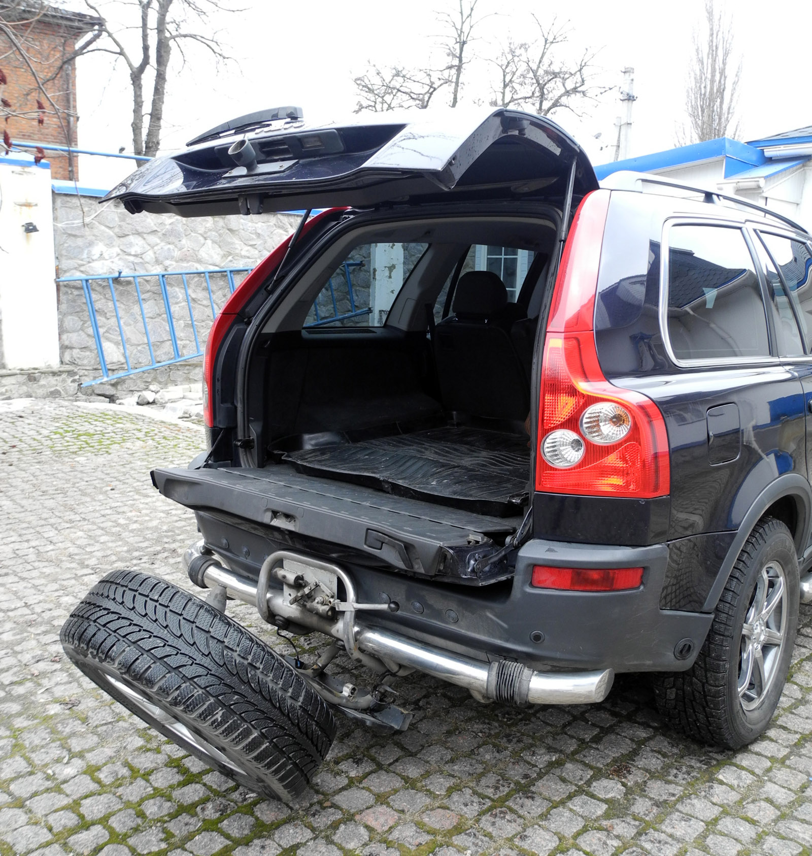 Дополнительно установлена запаска на заднем бампере по собственной технологии.