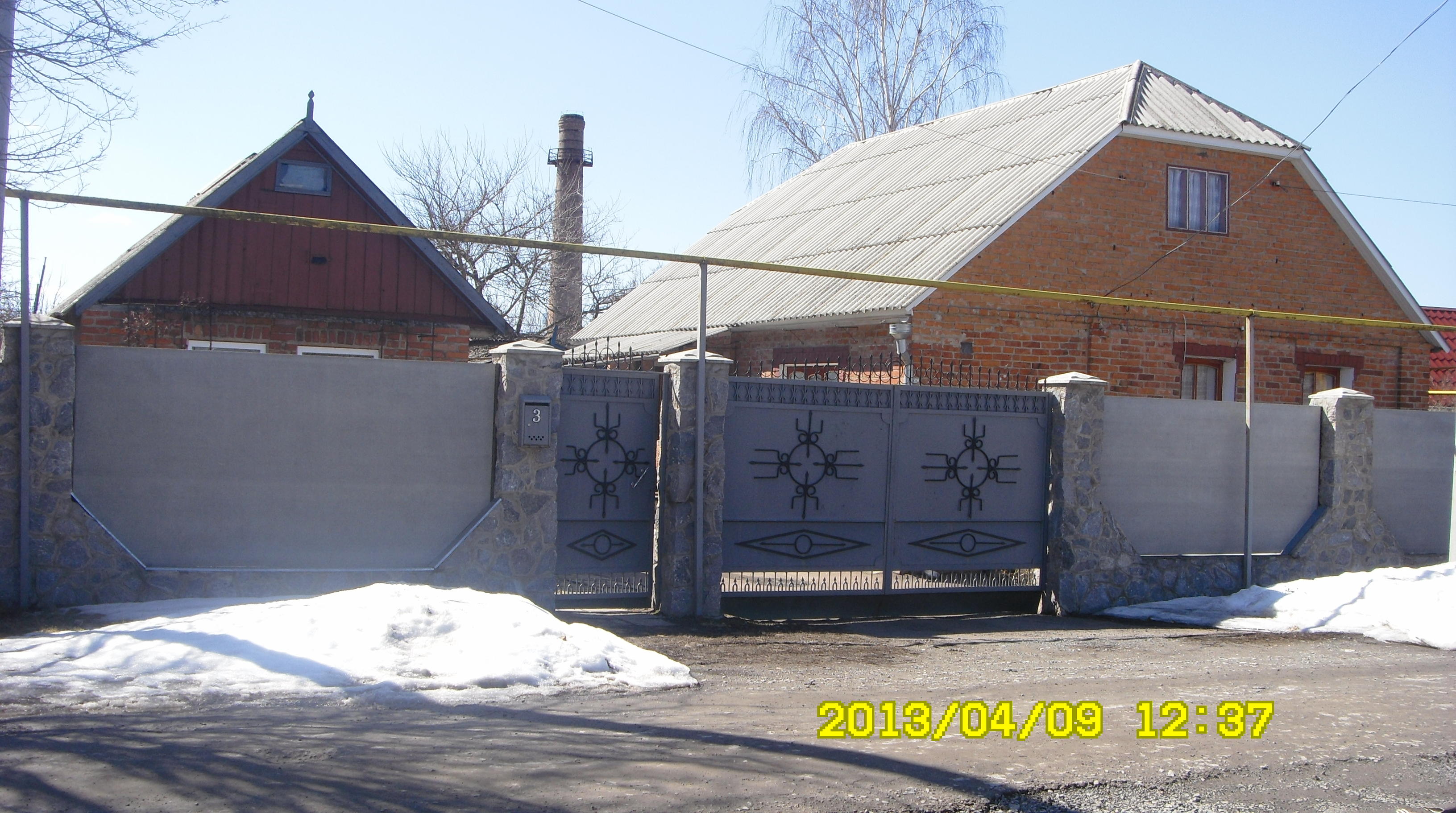 Дом деревянный, обложенный кирпичом, крыша - шифер (высокая). Усадьба ограждена плоским шифером. Ворота и калитка из металла - новые.