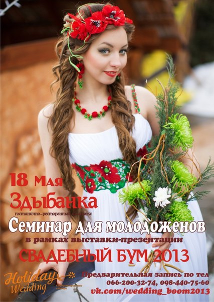Будущие МОЛОДОЖЕНЫ, приглашаем Вас на нашу выставку и "СЕМИНАР ДЛЯ МОЛОДОЖЕНОВ", где вы сможете узнать все об организации свадьбы, задать любые вопросы и получить профессиональную консультацию у специалистов свадебной индустрии. Вам будет выдана анкета свадебных мелочей, предоставлена возможность личного общения с фотографами, флористами, ведущими и другими свадебными экспертами. Вы станете участником розыгрыша дисконтов и главного приза - Номера для молодоженов в ресторанно-гостиничном комплексе «Здыбанка»!