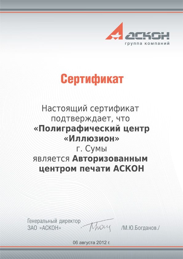 Полиграфический центр "Иллюзион" является участником партнерской программы Corel Print Partner. Мы используем только лицензионное программное беспечение. На сегодняшний день наш полиграф. центр является единственной сертифицированной типографией Corel в Сумском регионе. Мы принимаем в печать макеты, созданные в графических редакторах CorelDRAW, Corel PHOTO-PAINT, Adobe Photosop и всех графических форматах.