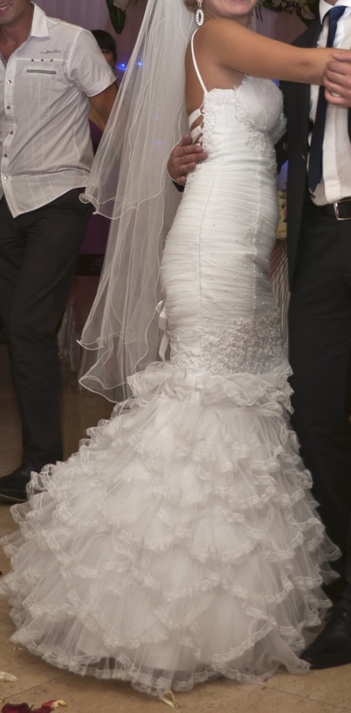 Необычное свадебное платье, цвет белый, немного расшито бисером, размер 44-46. Кольца идут в комплекте. Цена 1500 грн. В подарочек - шпильки с камешками в волос и сережки. Смотрится как комплект.