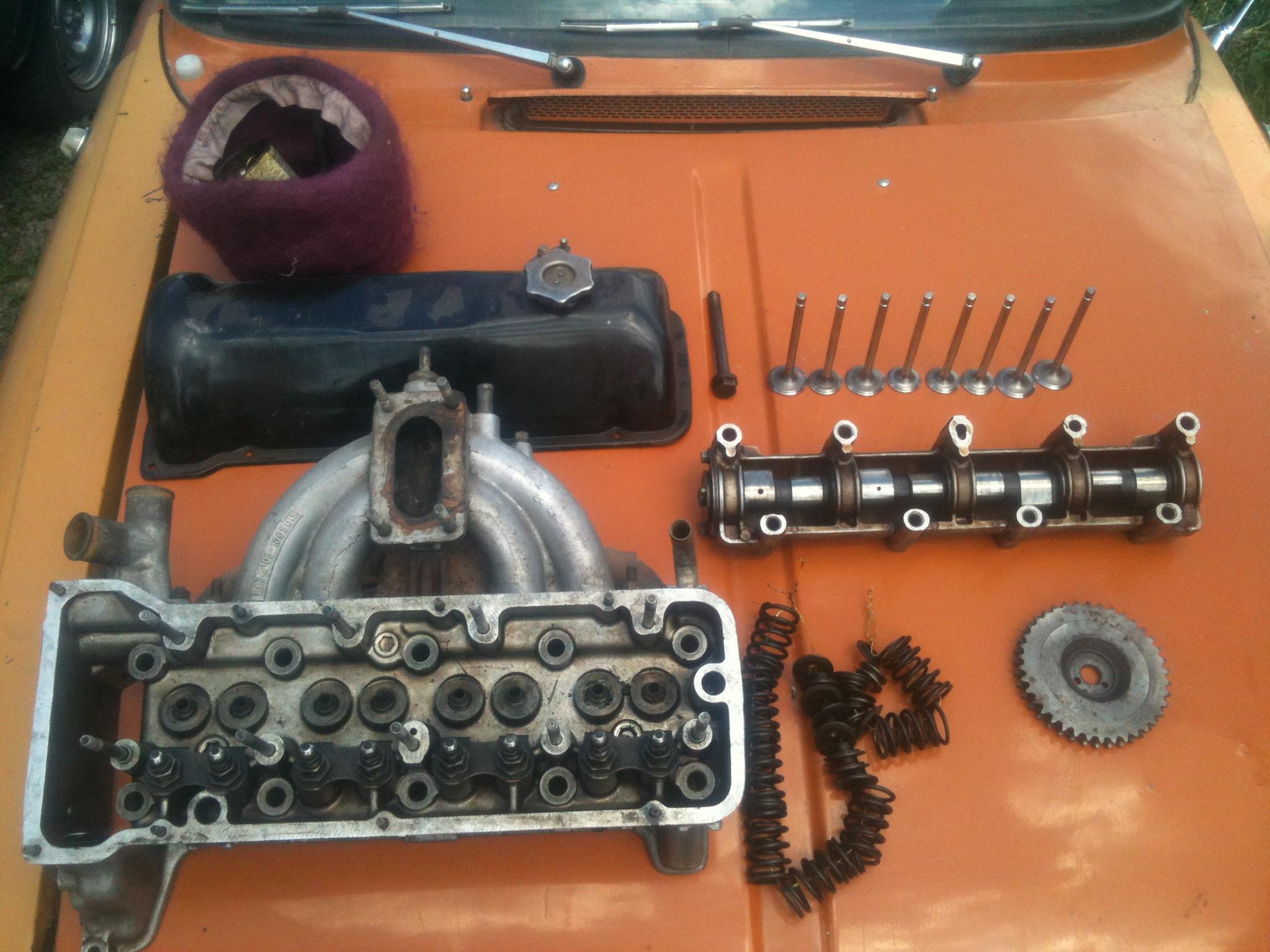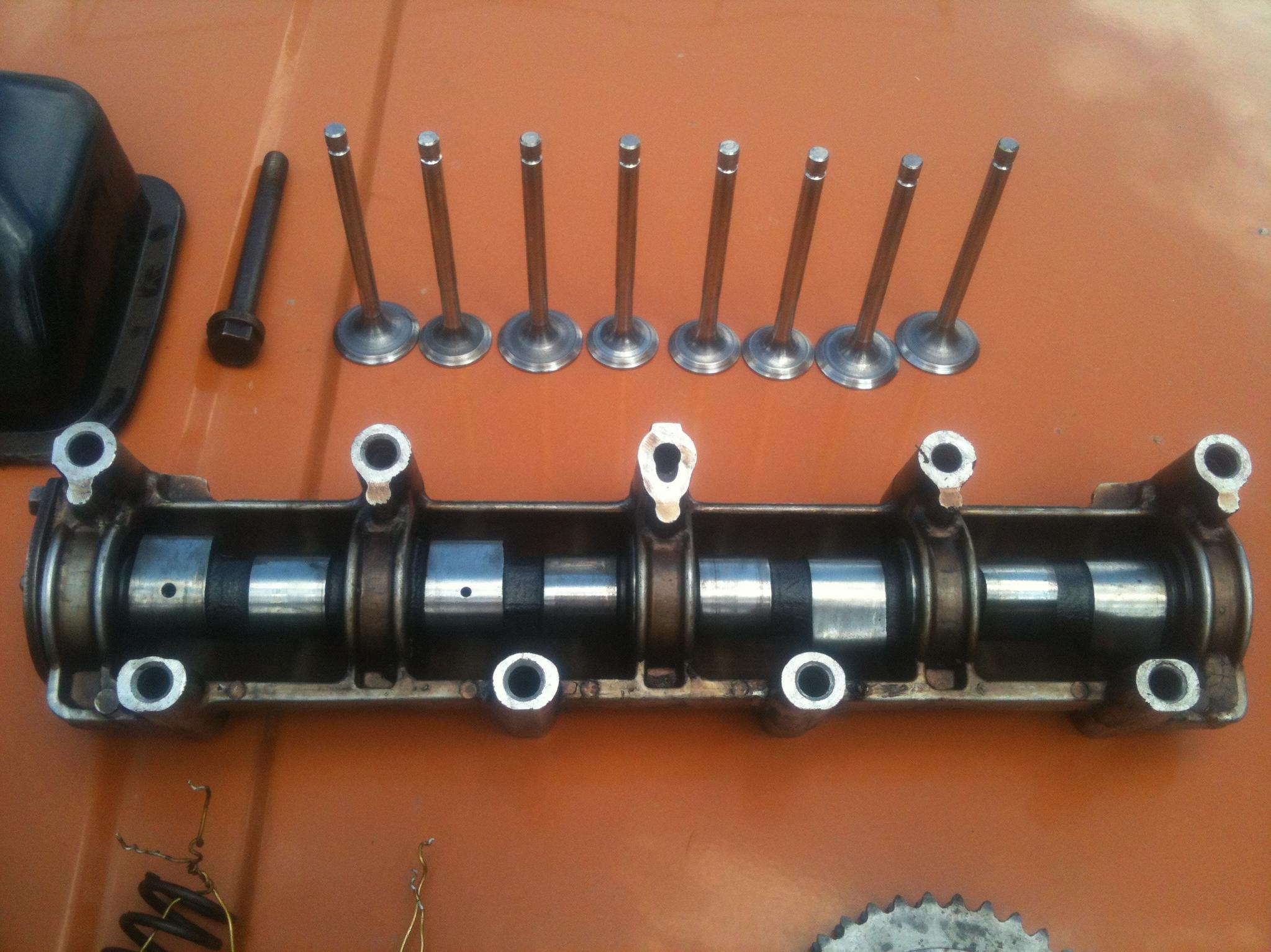 в комплекте сама головка в хорошем состоянии, помытая, новые хорошие клапана(хорошего качества), пружины, сухари, распредвал, крышка распредвала, все необходимые болты, звёздочка, коллектора, рокера,шайбы!