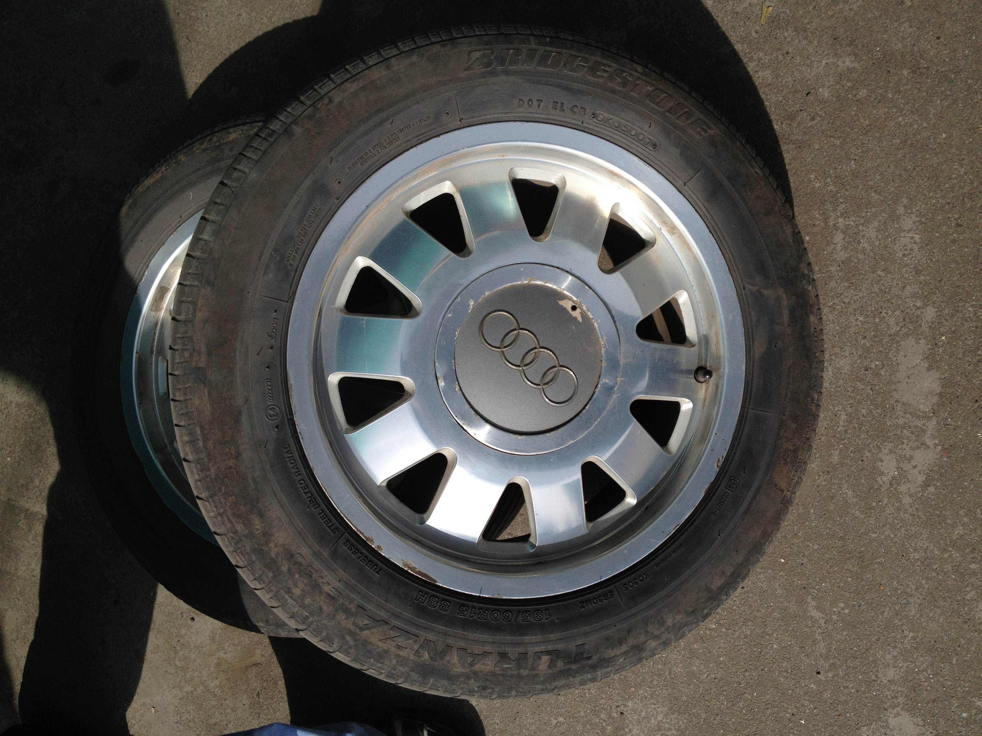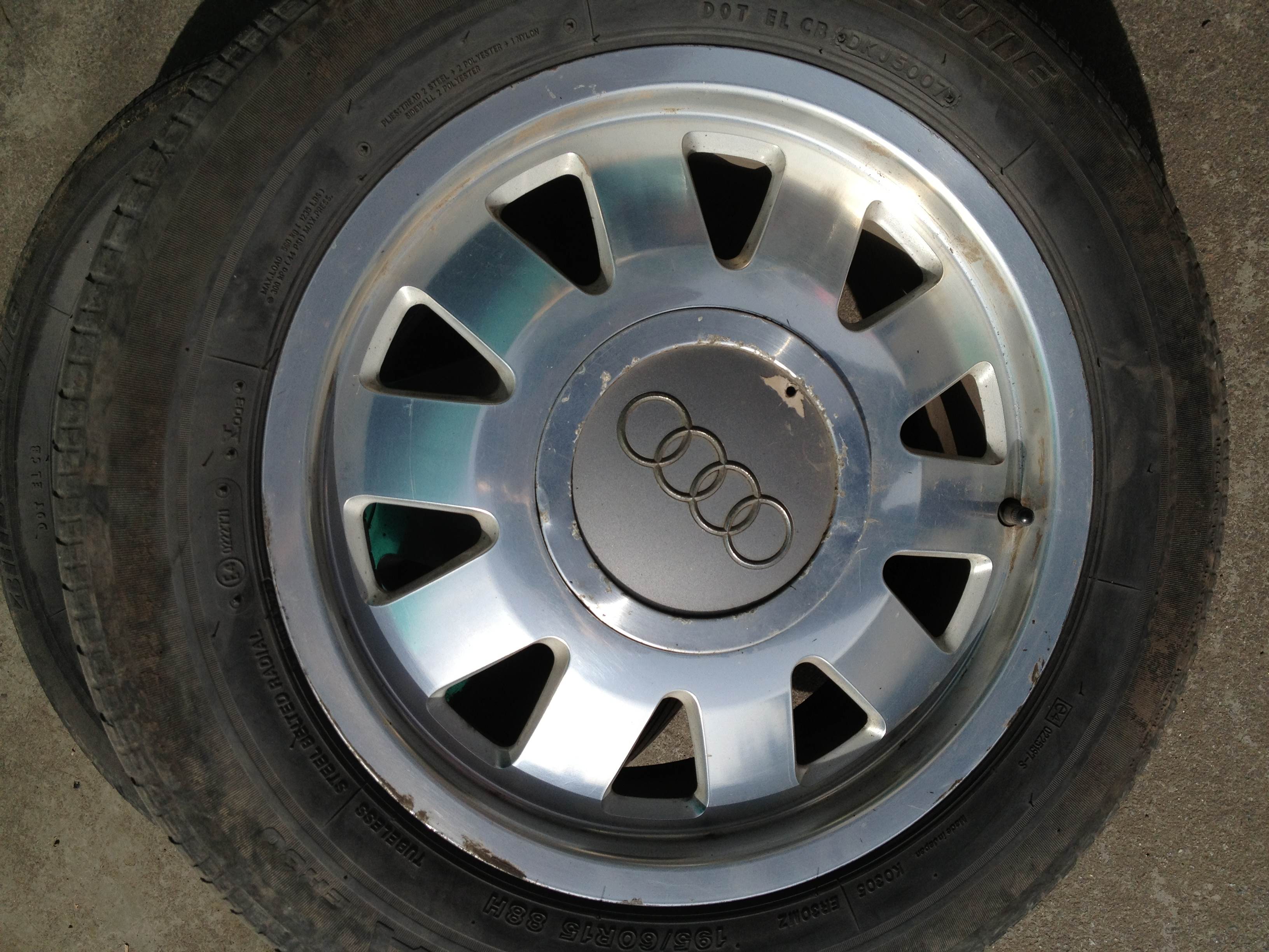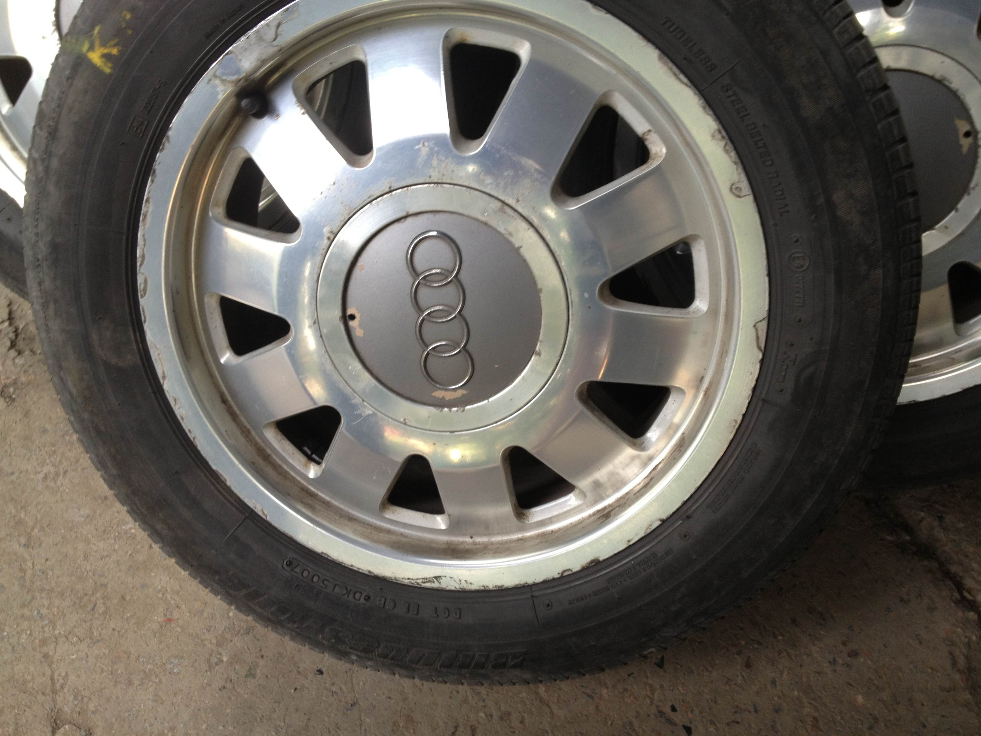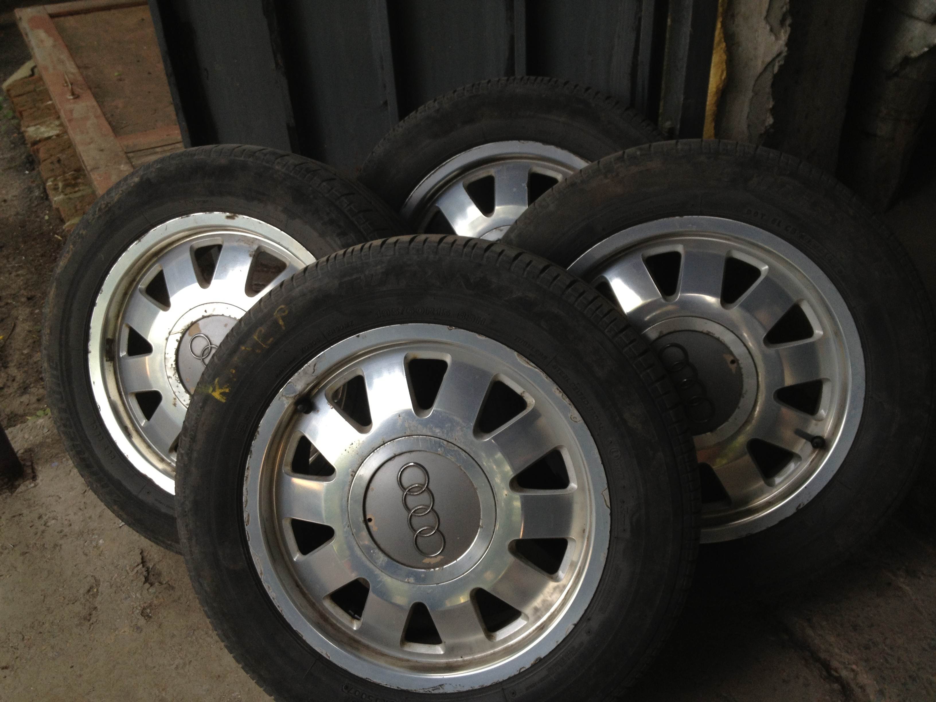 Продам 5 стоковых легкосплавных дисков с летней резиной с AUDI A6. Один диск требует ремонта (на фото). 1799 грн за всё!
