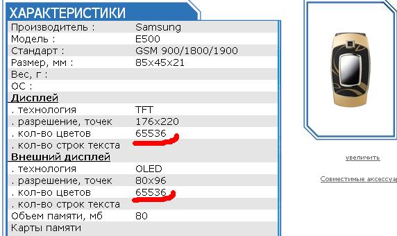 и еще дисплей не 256 тыс.цв.,а 65536 (такой же,как и внешний)-характеристика из журнала "СОТА"