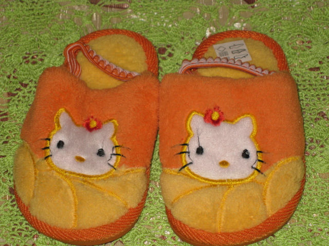 2.Тапульки "Китти"-мягенькие,приятные к телу.Подошва прорезиненная,на пяточке резиночка для фиксации.Размер 14.Цена 25грн.