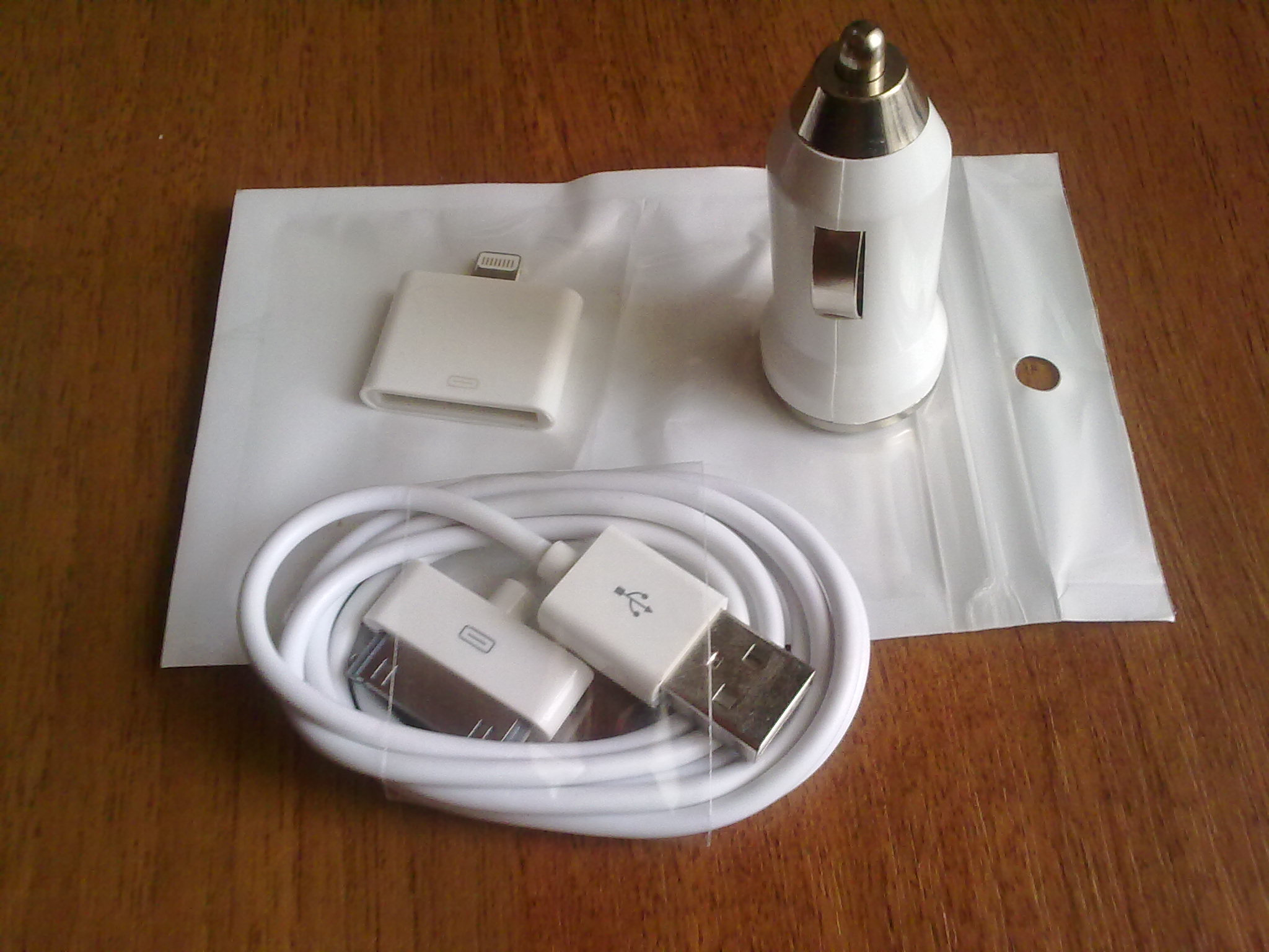 Лот №3: Автозарядка для iphone 5/nano 7/touch 5/ipad mini/ipad 4: автозарядка+usb-кабель+переходник