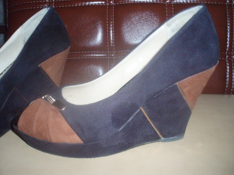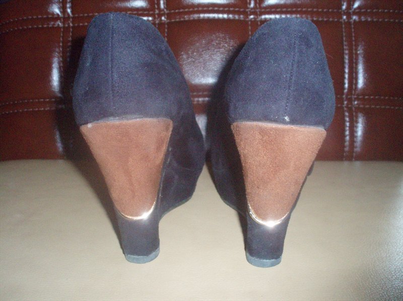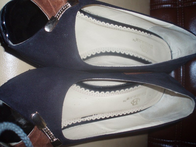 Дорогие девушки! Купила туфли женские замшевые осенние на платфоре - 10 см. Цвет - чёрные с коричневыми вставками, очень красивые! Размер 40, на меня большие... В отличном состоянии, но сбит носик, - фото прилагаются, смотрите. Набойки сама ставила, полиуритан. Покупала в Киеве за 370. Продам за 60! 066 66 222 63. Звоните)
