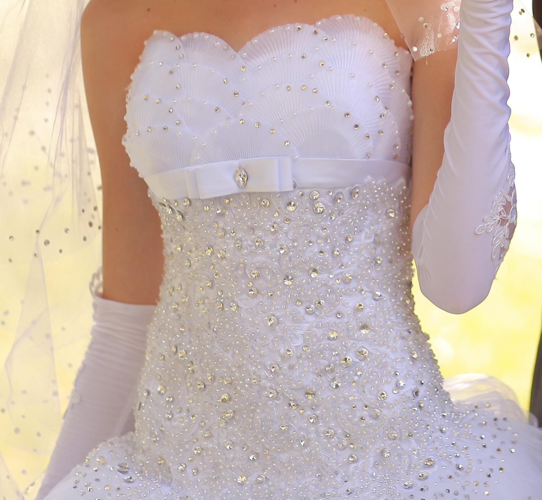 Свадебное платье в камнях, очень красиво смотрится, особенно на солнце. Размер до 46, рост приблизительно на 168 см (+/- несколько сантиметров в зависимости от каблука туфлей). Цвет белый. Платье легкое и удобное. Перчатки в ПОДАРОК. Цена - 1900 грн. (возможен торг). Кого интересует оставьте свой e-mail я скину больше фото, так как на сайт не загружается, потому что размер фото большой.