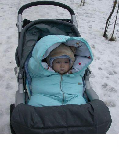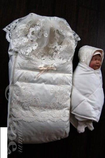 Конверт окутывает ребенка, создавая непродуваемый «кокон». В таком одеяле ребенка можно возить в коляске или носить на руках.