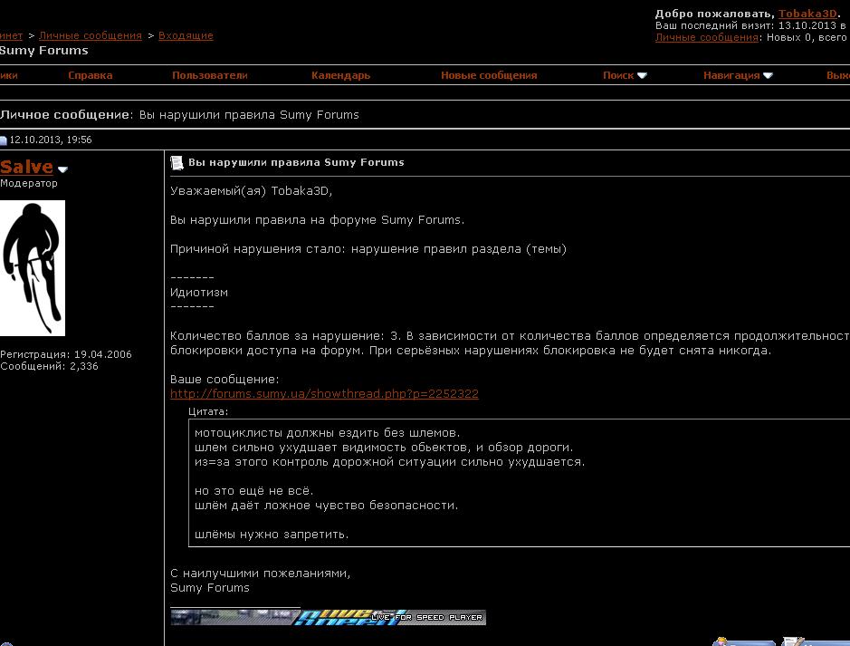 а то мало того что ему что-то почудилось прочитав моё вполне обоснованое сообщение, так ещё и предупреждение смастерил мне.