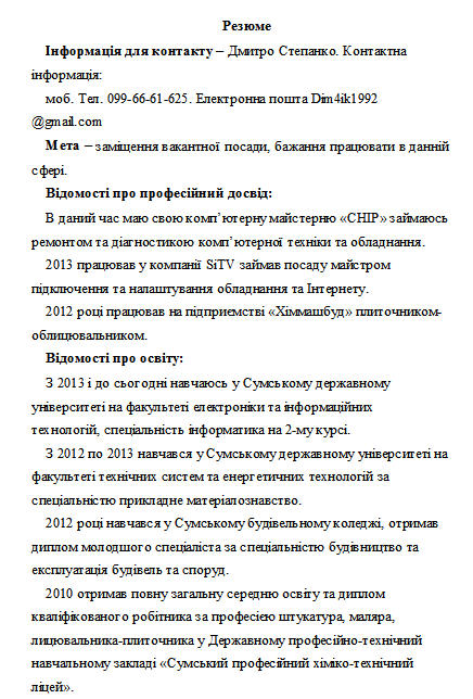 Есть опыт работы с ремонтами компьютеров и ноутбуками, настройка сетей и т.п.... больше 4 лет.