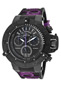 Hands Black and luminous hour and minute. Purple and luminous second. Black and purple subdial and date
