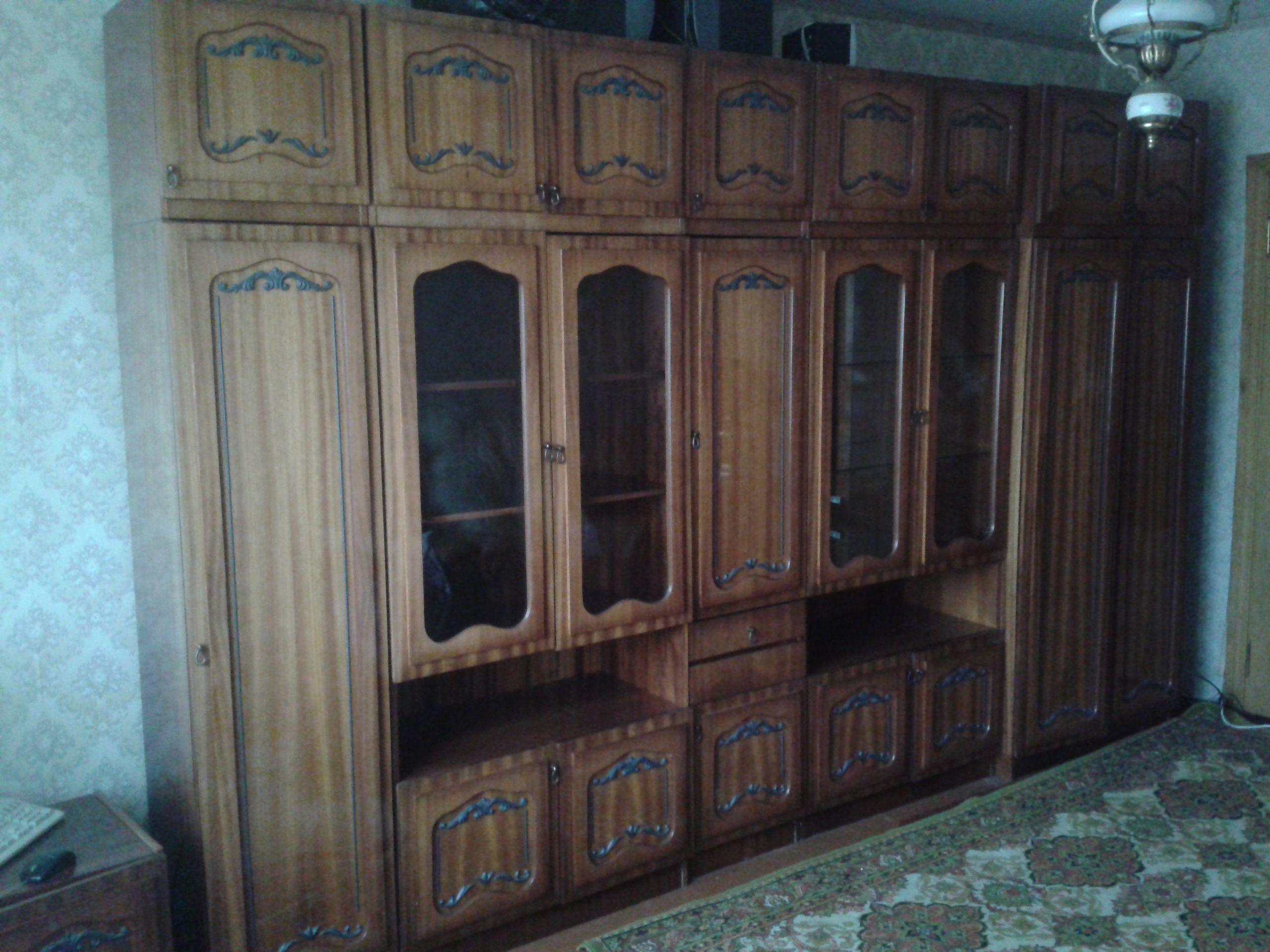 Продам стенку "Калина"в очень хорошем состоянии. Стенка натуральное дерево дуб полированный. Все стекла и зеркала целы. В комплекте тумба под телевизор и стол. Цена 4000 грн. торг уместен.