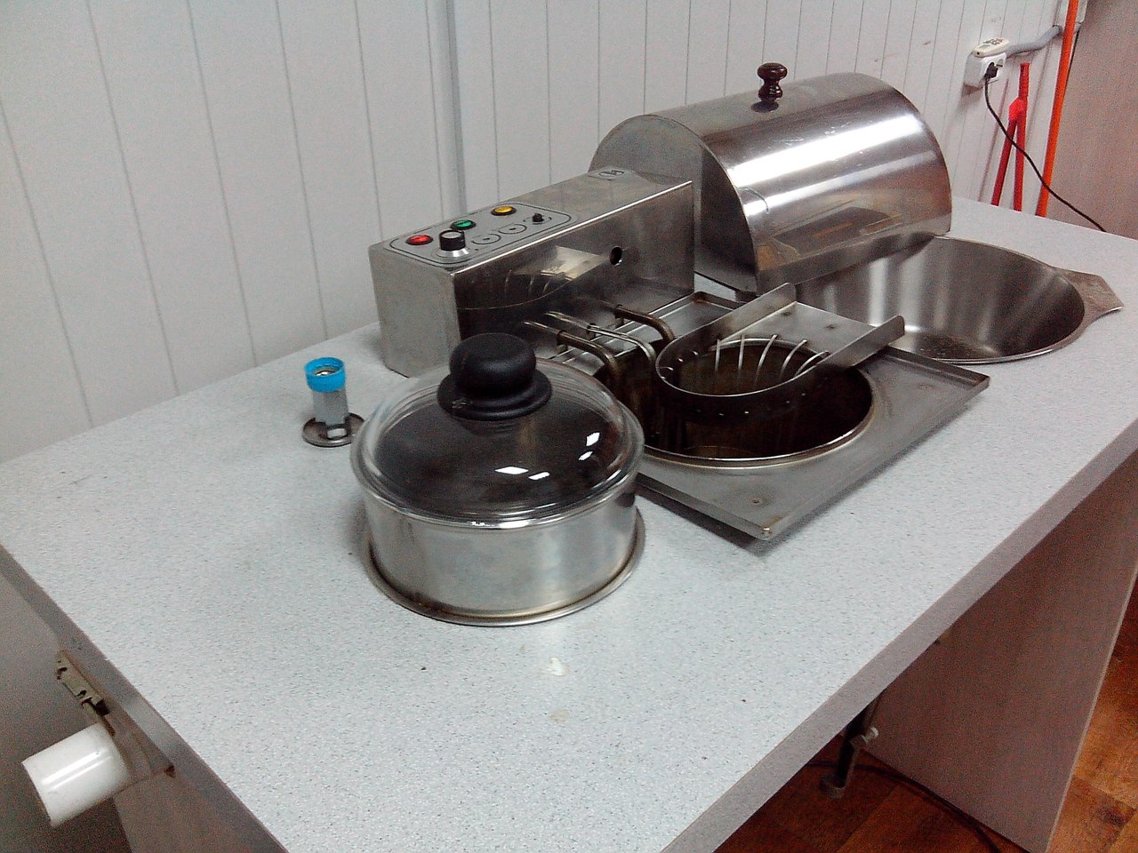 Продается < пончиковый > автомат вертикальной жарки. (10000грн.)Вертикальная жарка позволяет свести к минимуму расходы фритюра, т. к. не требуется его полная замена, расход фритюра — не более 100 мл. на 1 кг готовых пончиков! < Аппарат > умещается на столешнице размером 60х90 см., масса в упаковке — 27 кг.