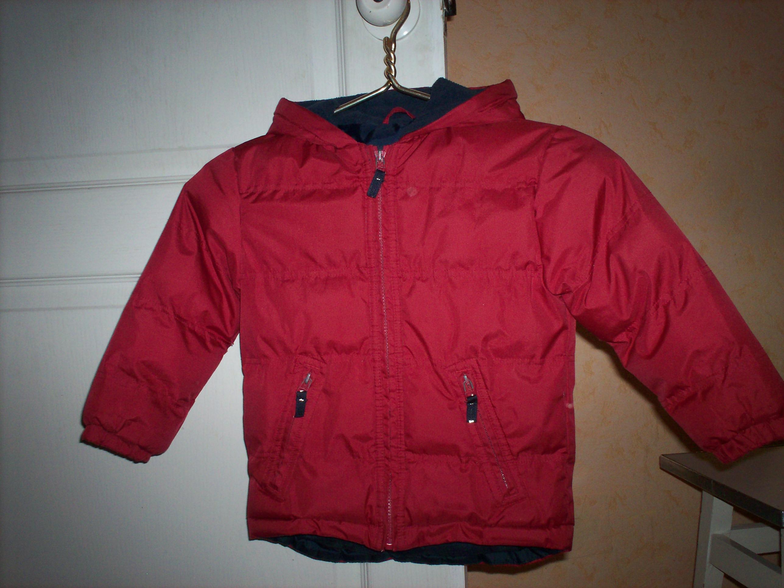 1. Красная куртка осенняя, теплая. Длина рукава - 36 см, длина куртки - 47 см. В хорошем состоянии. Змейки рабочие. Капюшон.