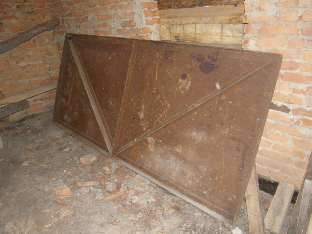 Ворота гаражные 1,5Х3 каждая секция,метал 2-3 мм, размеры не точные, не было рулетки; еще не стояли, состояние хорошее, есть только несколько дырочек, около5 штук на обеих. Цена 2500 грн. торг.