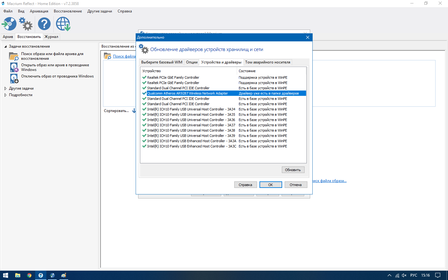 Тут есть одна тонкость. Этот самый Макриум когда отключаешь пункт загрузочного меню, само меню не удаляет, а при новом подключении не перезаписывает! А файлы для записи на флешку берет именно оттуда (если меню уже подключалось).В английской HOME x64 рег-файлы не добавляют лицензию. Wi-Fi в home x64 (v7.2.3858) не подключается, вкладка в русской версии с новым русификатором не открывается, список открывается по значку. Вот здесьYou must be registered for see linksпишут, что проблема была у Майкрософт, которая вроде была исправлена, но wi-fi не подключает. Возможно, это только у меня, и я что-то делаю не так. Адаптер Qualcomm Atheros AR9287, драйвер добавляется на аварийный носитель, и в WinRE вкладка "Неподдерживаемые устройства" пишет что все драйвера загружены.