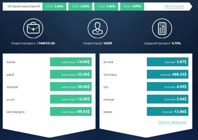 Рост инвестиций происходит на ваших глазах. Так же в любой момент начисленные проценты от ваших инвестиций доступны для мгновенной выплаты.
