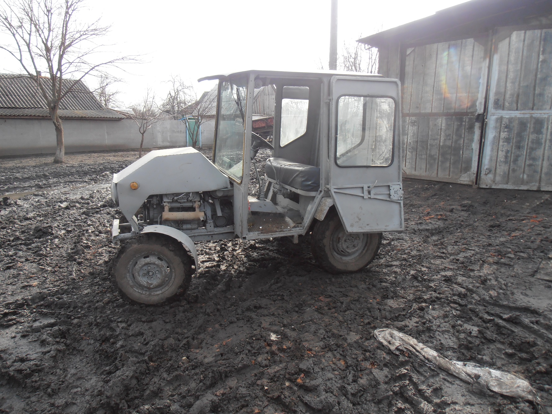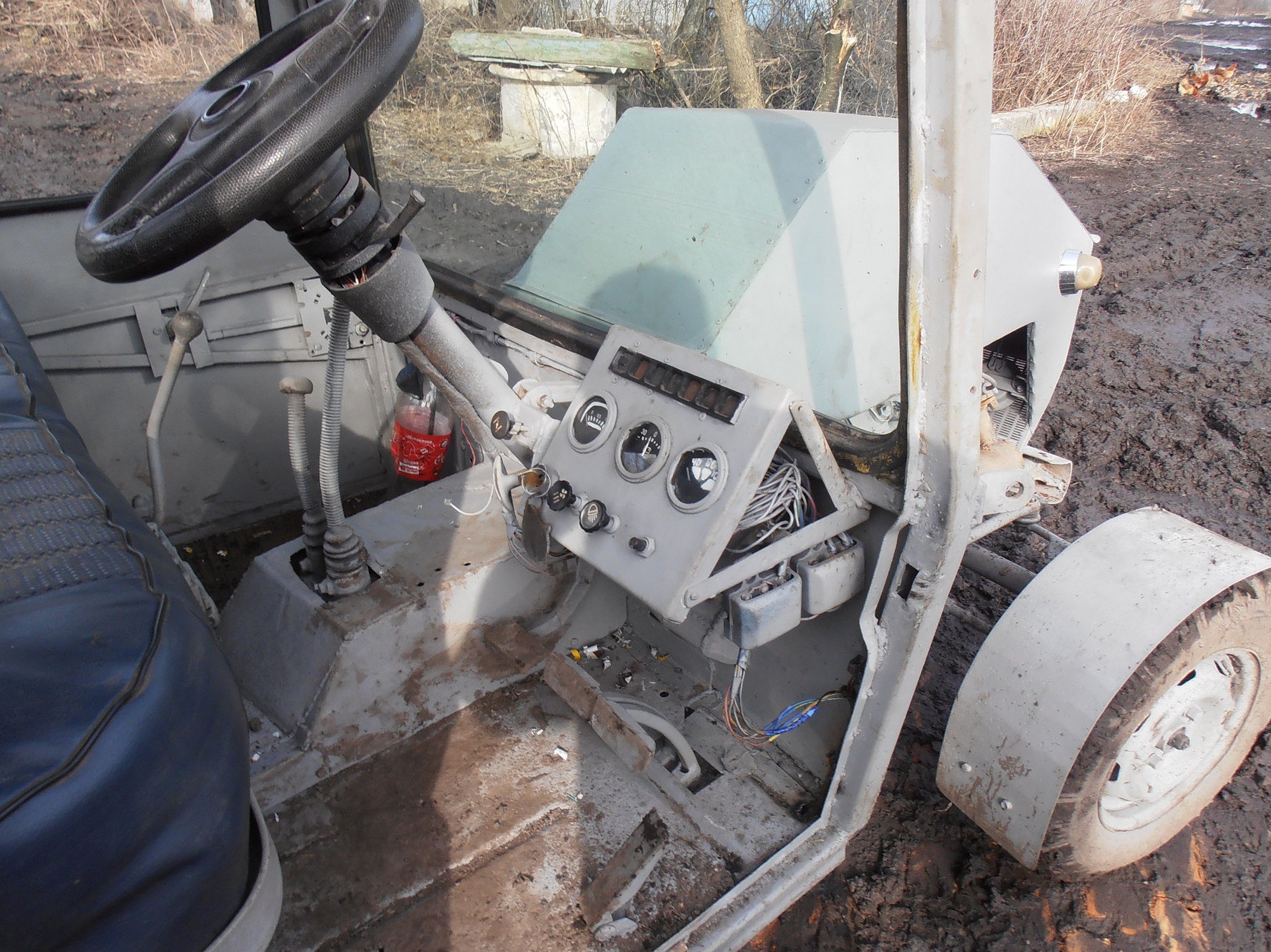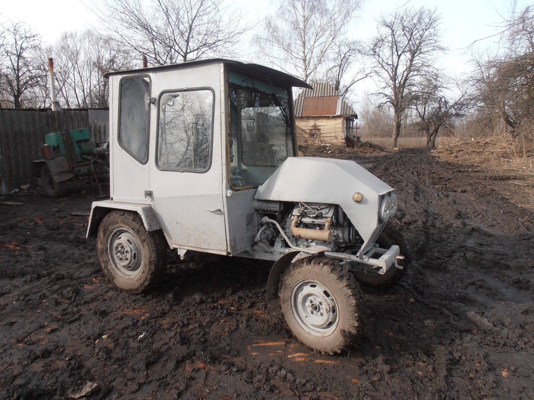 Двигатель от "запорожца" произведен полный кап. ремонт, карбюратор "соликс" с автомобиля ваз 2109, Трансмисия с волинки 4 передачи + понижение + редуктор понижающий, мост задний с москвича 412, задние диски урезаные на ширину 120см передний мост также на 120см. Правый левый тормоз. Благодаря этому можно подобрать нужный ход для разных работ. Световое оборудования в полной комплектацыи (стопы, повороты, габариты, аварийка,дальний ближний свет). Очень "легкое" рулевое управление. В кабине установлено автономное отопление, центральный дворник, обе двери очень легко открываються на 180 град. и закриваються. В общих чертах кабина очень просторная и с нее очень хороший обзор на все стороны.