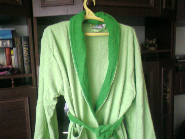 Продам новый махровый халат салатного цвета с зеленой отделкой. Производство- Испания.